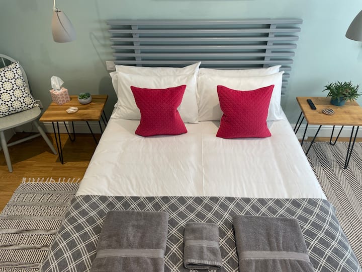 טכנאי בידור >>>> פס רחב של סיבים עם Wi - Fi מסופק ויש מגבר נפרד לאגף האורחים כדי להבטיח אות חזק. יש טלוויזיה חכמה 43 אינץ' (110 ס"מ) עם מתלה מסתובב כדי לאפשר לכם לצפות מהמיטה או מהכיסאות הנוחים. הפס הרחב של הסיבים יאפשר לכם להשתמש במכשירים שלכם לבידור או לגשת לשירותי המנויים שלכם דרך הטלוויזיה החכמה.