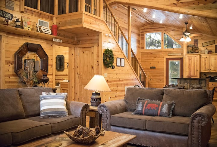 בקתה יפה מעץ ביער ליד אגם Broken Bow