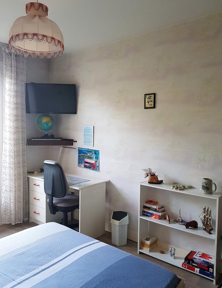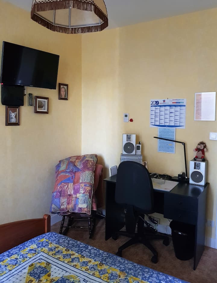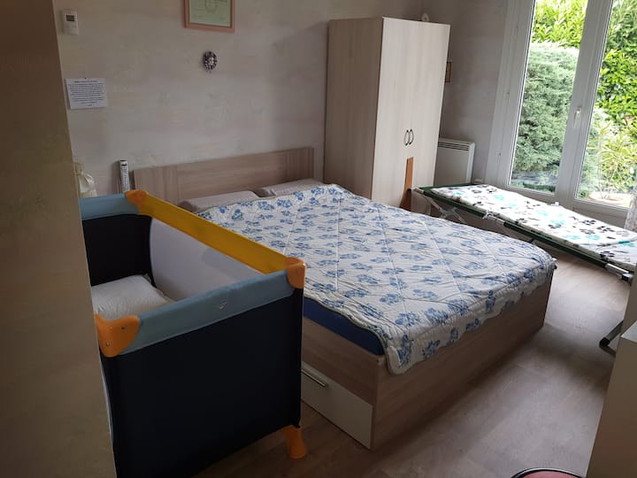 החדר הזה אנחנו מזמינים אותו קודם לזוגות או לזוגות עם שני מבוגרים + 2 ילדים קטנים הזקוקים למיטת תינוק ועריסה קטנה, כך שאם אתם אדם אחד, אנחנו מסתכנים בקצות לכם את החדר השני, ראו את הנכסים שלנו (אותם שירותים לאורח: שולחן כתיבה עם תאורה, טלוויזיה עם HDMI2 נטפליקס, Amazon Prémium Video, נגן DVD, Wi - Fi, כל החיבורים לטעינת הטלפון החכם או כוח ה - Apple וה - Apple PC עם מדפסת הזמינה לפי בקשה) רק ההבדל רק בחדר הזה יכול לקבל מיטה נוספת נוספת על פני השטח שלו.