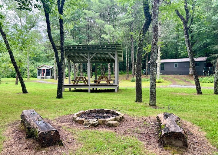 הבקתות ב - Hidden Hollow שוכנות בחורשה קסומה של עצי בירץ' מתוקים ושרכים שופעים. נחל מקשקש (מזרח המזלג של הנהר הצרפתי הרחב) מתפתל דרך הנכס. אתם תמצאו את עצמכם רגועים ושקועים בטבע ברגע שאתם חוצים את גשר העץ. אפשר לטוס - דגים במרחק צעדים ספורים מהבקתה או לצאת לנסיעה קצרה לאחד מכמה מקומות ב - East Fork Rd/Walnut Holler. יש שתי בקתות שאפשר להשכיר יחד.