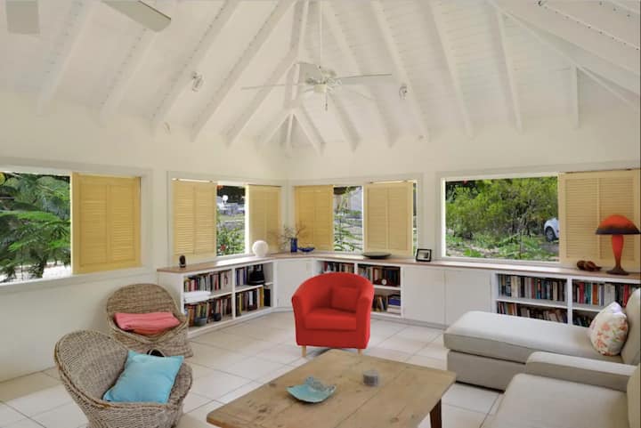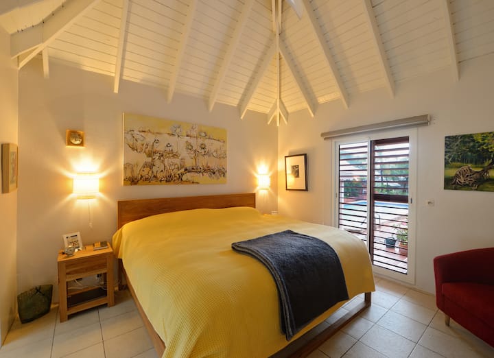 אני צייר מופשט ואוהב להביע את עצמי דרך האמנות שלי. במקור מגרמניה, הגעתי לסן - מרטין לפני 20 שנה כדי לברוח ממרוץ העכברים בניו יורק, בתקווה למצוא שלווה ושלווה בזמן שרדפתי אחרי האמנות שלי. בניתי בהתאמה אישית את הקוטג' שתקראו לו בית לשהייה שלכם בסנט מרטין. מאוחר יותר, בניתי ויצרתי את סטודיו האמנות שלי בצד השני של הנכס, שבו אני מצייר ומארגן תערוכות אמנות.