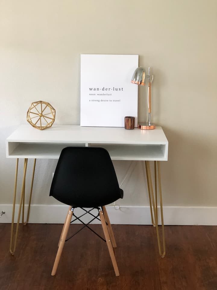 רשת Wi-Fi מהירה של 587 מגה ביט לשנייה, עם פינת עבודה ייעודית.