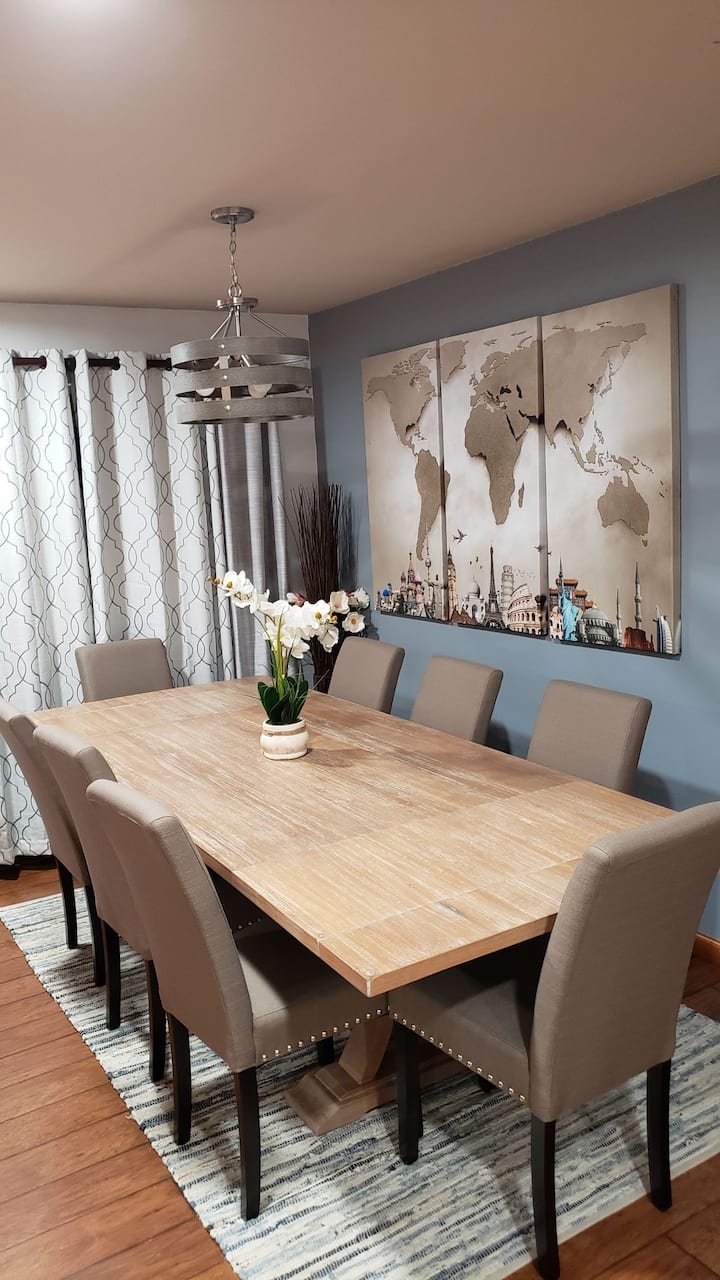 ישנם ארבעה חדרי שינה בסך הכל - 1 המלך, 2 מלכות, ומיטת קומתיים המלכה. הסלון מרווח מאוד ויש בו טלוויזיה עם Wi - Fi עם Roku מותקן. הבית מציע שני חדרי רחצה מלאים והוא מצויד גם במטבח מלא. המרתף או הקומה השנייה הוא חדר המשחקים שלנו. יש שולחן ביליארד, כדורגל שולחן, פינג פונג ושולחן הוקי אוויר. אנחנו מבקשים מהאורחים לשמור על האזור הזה נקי ולהימנע מהצבת מזון ומשקאות על כל אחד משולחנות המשחק.