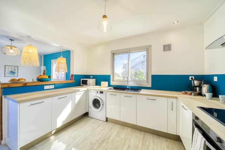 עם 3 חדרי שינה, המתאים לעד 6 אנשים, הוא נהנה מנוף מקסים לים, מרפסת וגינה.