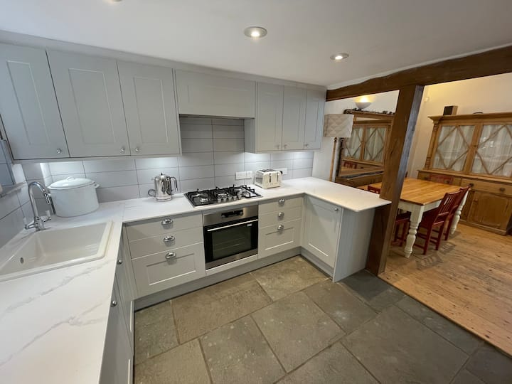 קוטג' נעים בדורסט, הליכה של 2 דקות לחוף הים ובתי קפה.
