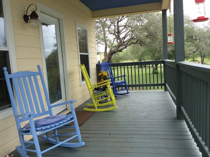 אנחנו חווה בבעלות משפחתית, ובעלי וילפרד קורת 'ואני גרים "ממש מעבר לעיקול" ממתחם בית ההארחה הזה. הרעיון הזה של שיתוף החווה עם האורחים הוא חדש למדי בטקסס, ואנחנו מוצאים שזו דרך נפלאה לפגוש אנשים חדשים ומעניינים. זו גם דרך נהדרת לגוון את זרם ההכנסה, כי אם אין לכם באר נפט בטקסס (ולנו אין), לא תמיד קל לשמור על האדמה שלכם. המקום שלנו הוא מקום מיוחד: אנחנו מנהלים את החווה לחיות בר, וגם מנהלים עדר קטן של בקר וחמורים מיניאטוריים ים תיכוניים! החמורים הם בעלי חיים עדינים, והאורחים שלנו אוהבים אותם יותר מכל. עם ההגעה לחווה אנחנו אוהבים לתת לאורחים סקירה מהירה של הבית שלהם ומפה של נכס החווה. אנחנו רוצים שתרגישו בנוח כאן, אז נשמח לקחת אתכם לסיור בנכס, ואז לשחרר אתכם ליהנות מהמקום כאילו היה שלכם. האורחים תמיד מוזמנים לתקשר ולהשתתף בפעילויות בחווה - עזרו לנו לקרוא לפרות, לצחצח ולהאכיל חמורים, מה שמשמח אתכם!