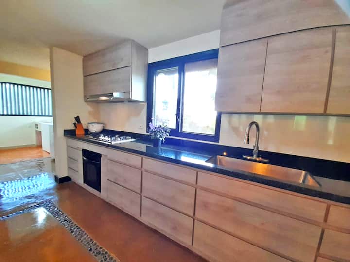 VÍVERES Y MERCADO: המטבח מאובזר במלואו עם הכלים החיוניים ומכשירי החשמל להכנת אוכל. באחריות האורחים לדאוג לרכישת האוכל הדרוש לשהייה שלהם מרגע הגעתם, כולל מפיות ומוצרי מטבח כמו סבון וספוגים לשטיפת כלי החרס. הוילה מסופקת עם חדרי הרחצה המצוידים בנייר טואלט, סבון פרוטקס למקלחות וסבון רחצה נוזלי. מומלץ לקנות לפני הכניסה לאחוזה, הסופרמרקט הקרוב ביותר נמצא בפארק הראשי של קימבאיה 15 דקות מהבית המשותף. אנחנו יכולים להמליץ על סופרמרקטים שמספקים שירות ביתי.