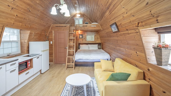 5 דקות מנמל Baeksajang, קומה כפולה חמודה, עליית גג קטנה, יחידה פרטית עם מרפסת פרטית