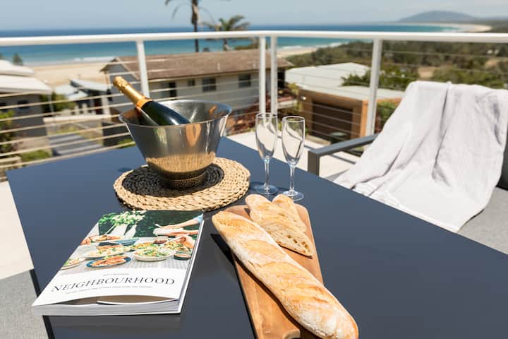 פנורמי מרהיב של 180 מעלות לנוף של החוף, האוקיינוס, חוף סבן מייל, נהר קרוק, פארק לאומי, הרים וכפרים כפריים