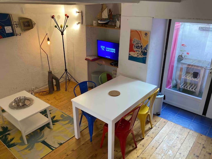 בית דייגים טיפוסי ליד הנמל והחוף
