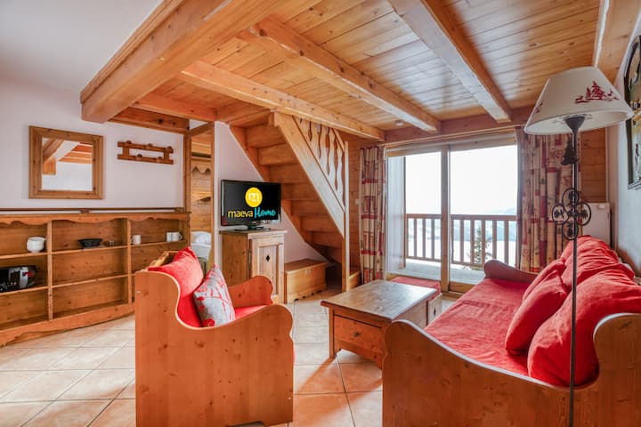 מגורים הפונים למון בלאן עם כל התשתיות הדרושות לחופשה מוצלחת בהרים.