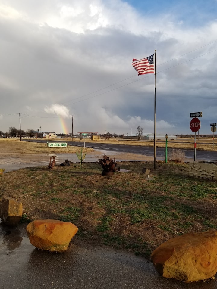 אשמח אם תישארו ב - Cactus Inn. אנחנו מוטל קטן של כביש 66 בטקסס. המוטל נבנה בסביבות 1958. אנחנו לא חדשים ומפוארים. אנחנו חמים, נוסטלגיים וגאים בניקיון.