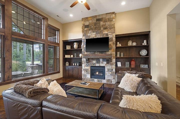 כשאתם נכנסים לבית ההר המדהים הזה, אתם נתקלים בחדר נהדר ומזמין עם קמין אבן גדול, חלונות תמונה ענקיים וטלוויזיה HD 60 אינץ' עם מסך שטוח. הקומה הראשית הפתוחה זורמת בקלות לחדר האוכל ולמטבח, מה שהופך אותה למקום המושלם לאירוח עם קבוצות גדולות.