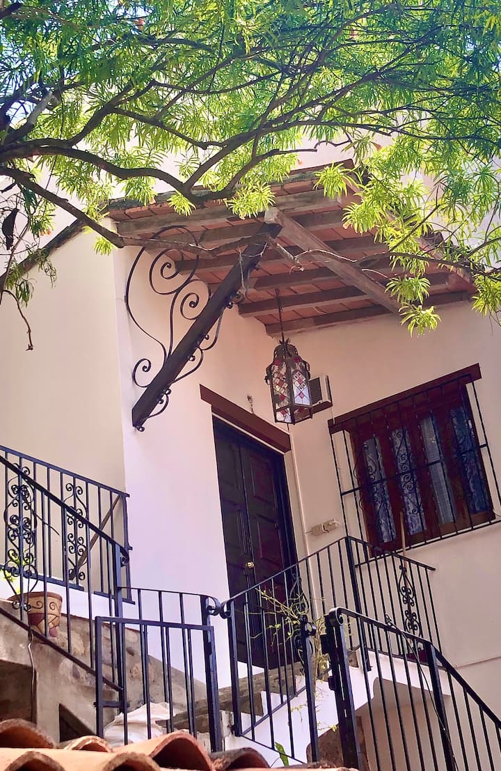 דירת סטודיו מרווחת עם גינה במרחק רחוב אחד מחוף הים באזור רומנטי