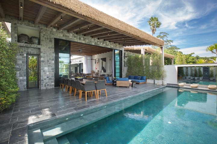 הווילה כוללת עיצוב עכשווי מודרני עם יצירות אמנות כפריות.