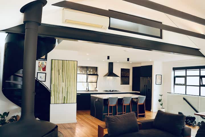 עלו במדרגות מלאות הדמויות אל אזור מגורים מרווח ושטוף אור. כאן מחכים לכם לבנים חשופות, תקרות אלומה גדולות ומטבח מודרני, שהוכתרו על ידי אח תלויה מעוצבת משנות ה -60 שמוסיפה מגע תעשייתי - שיק לסביבה. קומה זו היא עדות להיסטוריה העשירה של הבניין, השזור במיומנות ביוקרה עכשווית.