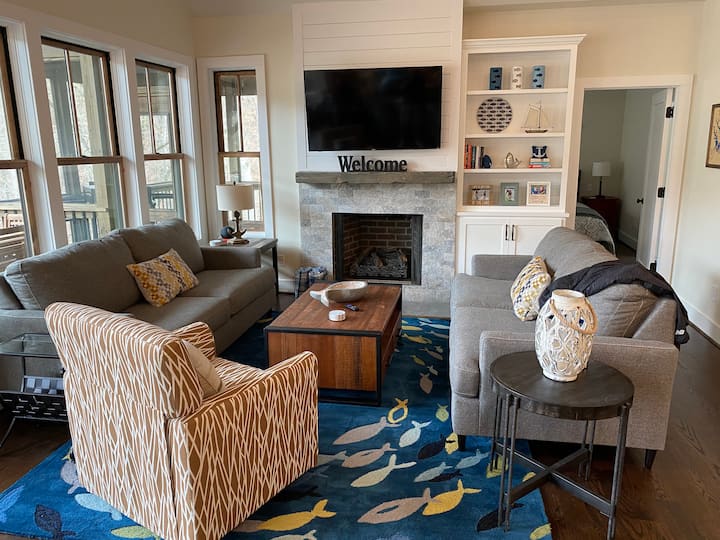 פריטי אגם ורציף: הרציף הפרטי שלנו ממוקם במרחק של כ-30 מדרגות מהבית שלנו. האורחים יכולים להשתמש ברציף, בכיסאות, בשולחנות, במטריה, בקיאקים, בקאנו, בפאדלבורד ובמשוטים שלנו במהלך השהייה. יש לאבטח פריטים אלה כדי לעגון כאשר אינם בשימוש במקרה של רוח או סופות. כל אובדן של פריטים אלה יהיה באחריות האורח.