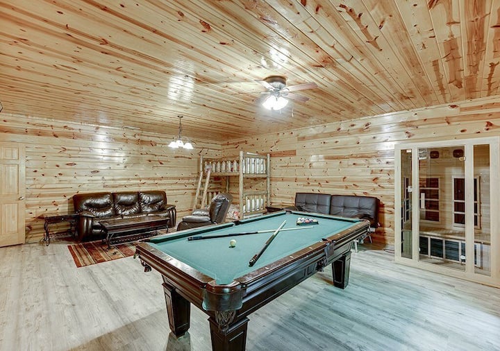4 חדרי שינה, מקום ל-12 אנשים בקתה ליד שביל, שולחן ביליארד/ג'קוזי