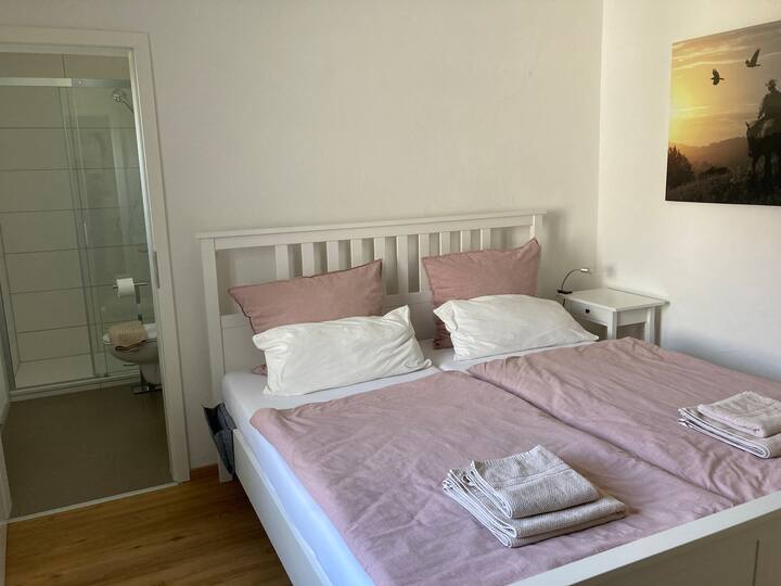 חדר אורחים עם חדר רחצה וכניסה פרטית.