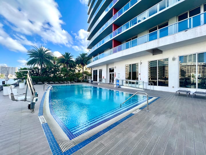 לחוות את החיים היוקרתיים בדירה בעיצוב פינינפרינה בהשראת פרארי, ב - Beachwalk Resort, בין מיאמי לפורט לודרדייל. דירת 2 חדרי שינה, 2BA זו כוללת חדר שינה ראשי בגודל קינג סייז, חדר שינה שני עם 2 מיטות בגודל מלא, 2 חדרי רחצה מרווחים ואינטרנט אלחוטי פרטי. ליהנות משירותי נופש כמו בריכה, אוכל ואטרקציות מקומיות. צ'ק - אין בשעה 16:00, צ'ק - אאוט בשעה 11:00. מושלם למנוחה או לסיור בחוף הלנדייל. שהייה חלומית בנכס בעיצוב פרארי מחכה לכם!