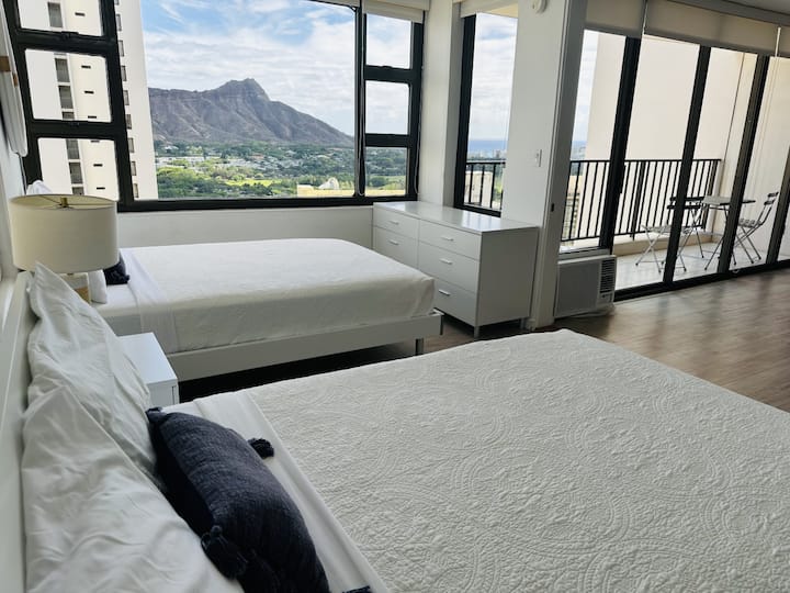 ממוקמת בקומה גבוהה, יחידת חדר שינה אחד עם חניה חינם כלולה (מקסימום 6') מציעה רגעים ייחודיים של מנוחה וכיף לשהייה בלתי נשכחת באי. סה"כ 3 מיטות: 2 מיטות מלאות בחדר שינה ומיטת קווין סייז אחת בסלון, יכולה להלין עד 4 אורחים. מהפרטי לאנאי שלכם, תיהנו מתצוגת ה - DH הציורית. במרחק 2 רחובות בלבד, או 350 מטר/ 0.2 מייל מהבניין, תמצאו את עצמכם ליד החופים החוליים היפים של וואיקיקי. ההרפתקה שלכם באי מחכה לכם!