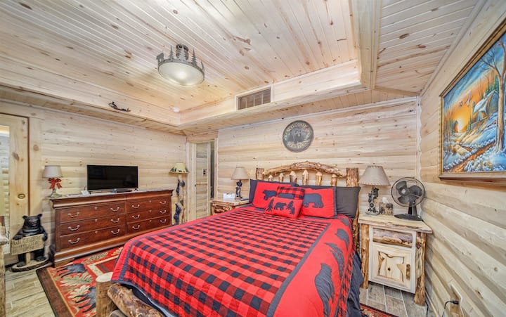 מאורת הדובים היא חדר העץ שלנו עם עיצוב דובים. יש לו כניסה פרטית הממוקמת בבניין חדר טעימות היין.