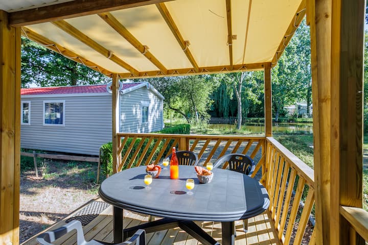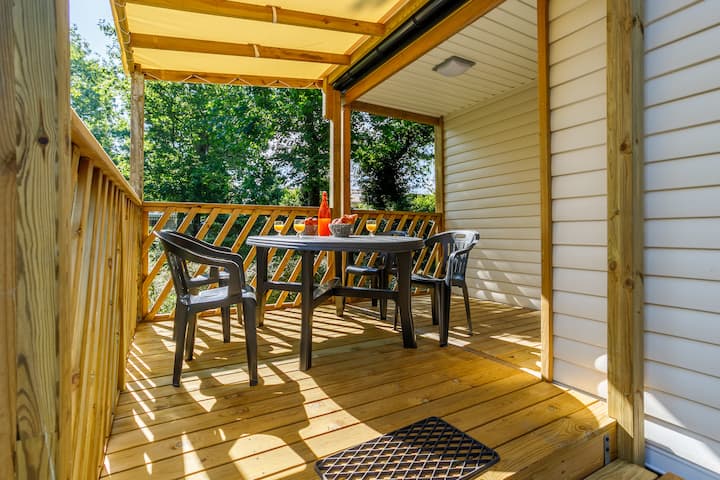 בית נגרר ל-6 אנשים במתחם נופש 4 כוכבים עם בריכה