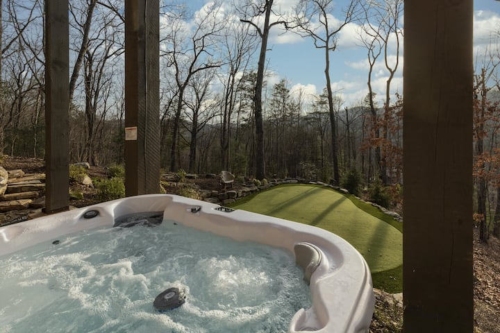 בקתה רחבת ידיים ומפוארת זו ממוקמת בצורה מושלמת בין בלו רידג' למקייסוויל, בגבול היער הלאומי. להתעורר לנופים הרים עוצרי נשימה בזמן שאתם מתאמנים בחדר הכושר או משפרים את משחק הפוטינג שלכם על המדשאה הפרטית. אחרי אימון מאומץ, תוכלו להירגע בג'קוזי או בסאונה בחוץ לפני שתדליקו את גריל הגז כדי לבשל את הבשרים האהובים עליכם לארוחת הצהריים. תיהנו מארוחה עם יקיריכם ליד שולחן האוכל בחוץ ותראו נופים מדהימים של הרי קוהוטה.