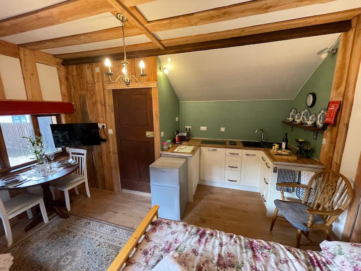 אחרי שפרשנו מטיפול בילדים, הפכנו את הבקתה בגינה האחורית שלנו ל'בקתת שומר היער' כדי לקבל בברכה אורחים השוהים ביער דין. הבקתה נבנתה בעבודת יד מעץ על ידי בעלי, ובקודם לכן שימשה כמקום שבו טיפלתי בילדים.