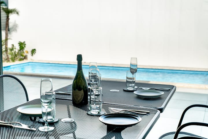 וילה פרטית עם בריכת מים חמים מוארת באורך 9 מ' ומרפסת [למוגבלים לקבוצה אחת ליום]