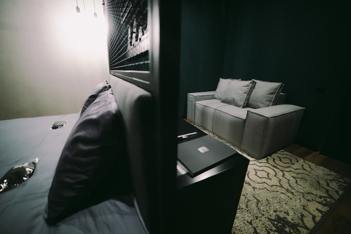 1 מיטה זוגית רחבה, 1 ספה נפתחת