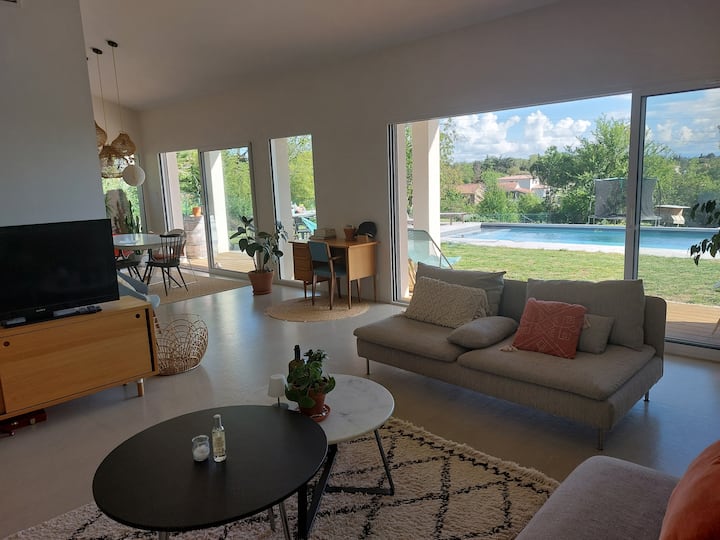 וילה מעוצבת עם בריכה ונוף לפירנאים 15 דקות מטולוז