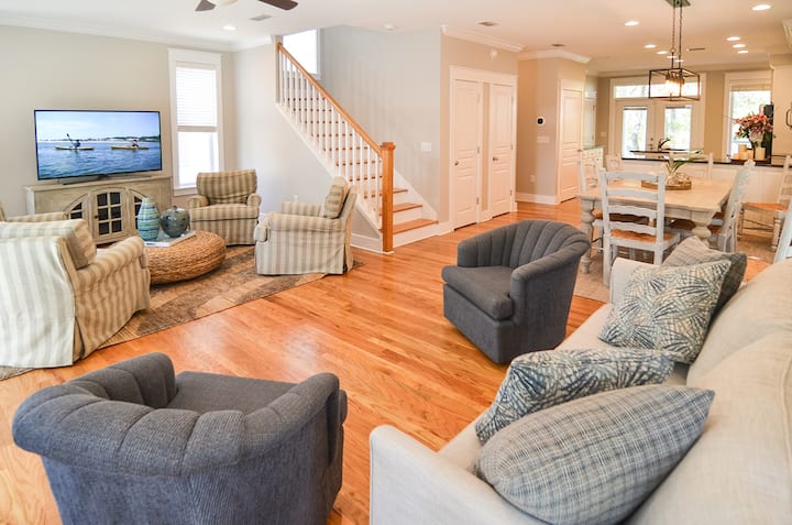 חופשה משפחתית כיפית בחוף הים | 3 חדרי שינה, מתאים ל-10 אנשים עם אופניים