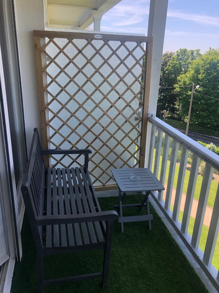 סטודיו מקסים, עם מרפסת ונוף לים.