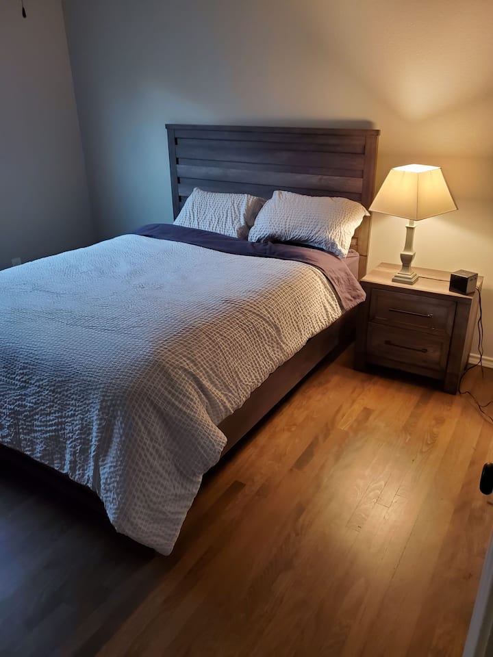 חדר שינה פרטי ונוח בשכונת מגורים.