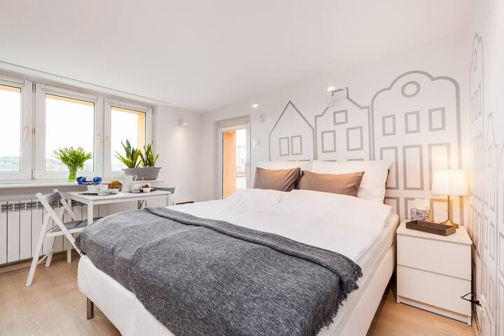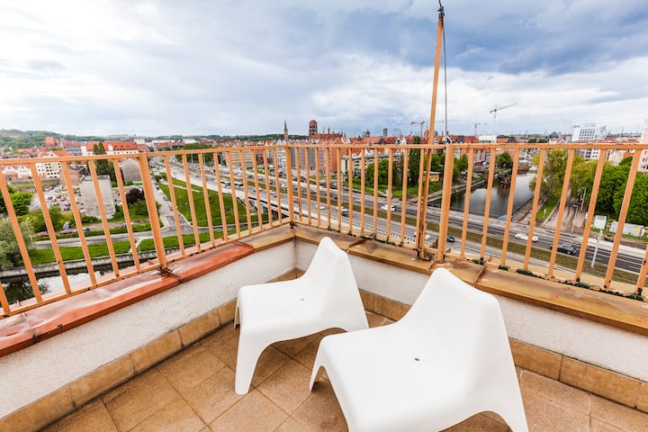דירת מיני עם מרפסת - נוף לעיר העתיקה של גדנסק