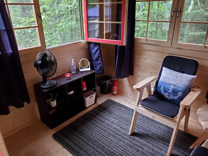 בקתה קטנה מוסתרת השוכנת באופן פרטי ביער