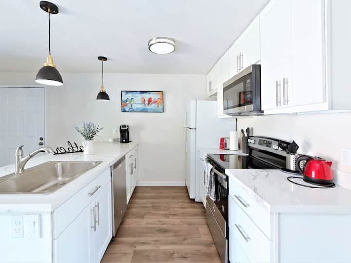 אנחנו מספקים כמה כלי בישול בסיסיים שתוכלו לעשות קצת בישול קל. משטחי גרניט ודלפק המטבח העצום מספקים שפע של פינות עבודה להכנת מעדנים ביתיים טעימים. פריטים מתכלים כמו מלח, פלפל, שמן, גבינה, חמאה, קטשופ וכו' אינם מסופקים.