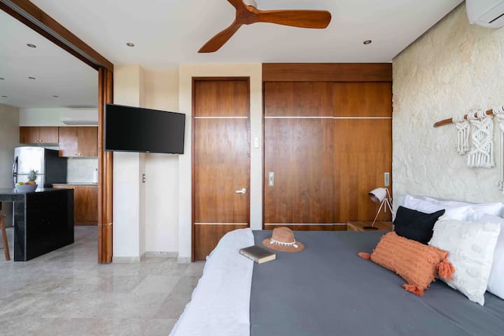 דירה מרווחת עם Wi-Fi מהיר ומיטת קינג