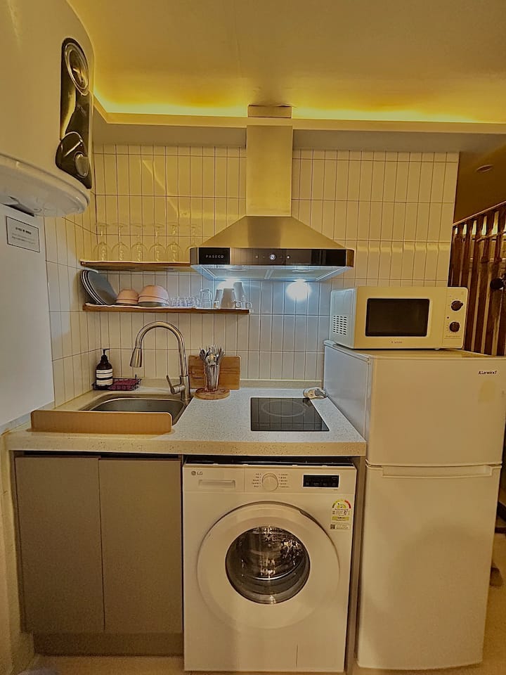🔥 מרפסת גג. מרפסת גג זמינה. נדרשת פנייה מוקדמת בעת השימוש בגריל המנגל. דמי שימוש - 10,000 וון לאדם. מסופק - פחמים, גריל, פריטי חד פעמיים (כף, קערה, נייר כסף, ניילון, כפפות, כוס נייר, מלח, פלפל)