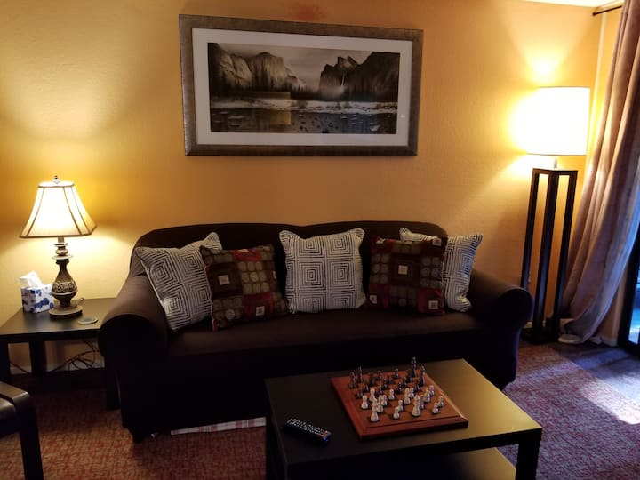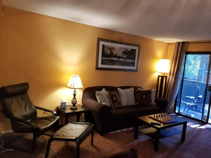 דירת חדר שינה אחת מקסימה עם קמין פנימי.