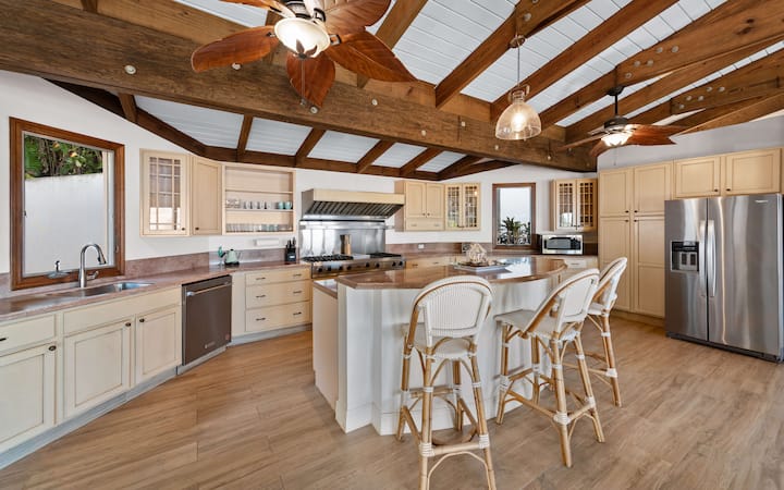 ✔ מטבח שף מאובזר עם כיריים גז ויקינג ותנור, משטחי גרניט וארונות מודרניים
