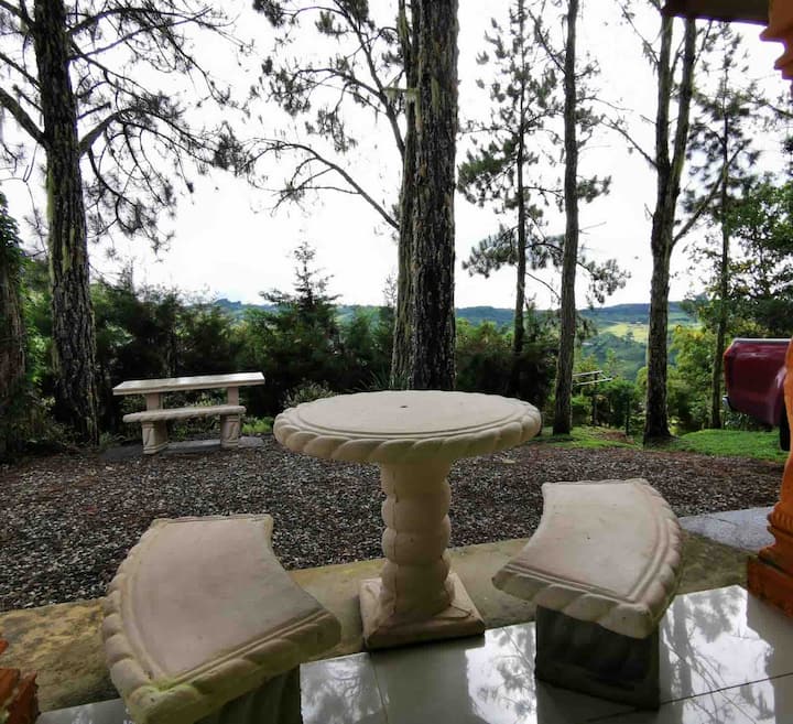 בקתה נעימה בהר מוקף עצי אורן...