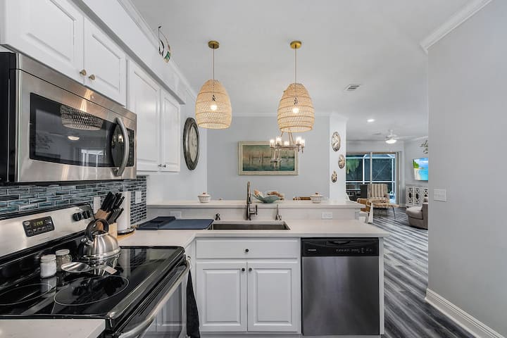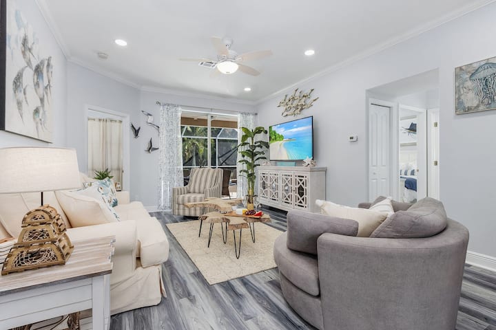 בבית יש ריהוט חדש לגמרי לכל אורך הדרך והוא מעוצב בקפידה ובתשומת לב רבה לפרטים. יש אווירה רגועה, נוחה וחופית לכל אורך הדרך. כל מקום מואר ומואר והתקרות הקמורות הגבוהות, המאווררים ודלתות ההזזה מזכוכית לאזור הפטיו המסודר ודק הבריכה, המספקות למגורים בתוך פלורידה/מחוץ לבית במיטבו.