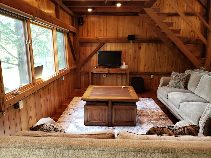 בחוץ, עלו על ראש הסילו שלנו ותיהנו מנופים פנורמיים עם רוח רעננה מעל כל זה. לחלופין, אפשר להירגע במרפסת המשקיפה על האגם והנחל בזמן שאתם נוטים לאכול ארוחת ערב על גריל הפחם. אחרי ארוחת הערב, צאו דרך המרתף כדי לדוג (הביאו מוט!) עבור bluegill ובס בבריכות, צאו אל הקצה הדרומי של הנכס כדי לצפות בשקיעה מלכותית מעל הנחל, ואז טיילו אל בור האש הגדול שלנו (עצי הסקה אינם מסופקים, אך ניתן לאסוף אותם מקומת היער, או לרכוש אותם מ -7/11 במרחק של פחות ממייל) לסיפור סיפורים ומרשמלו.
