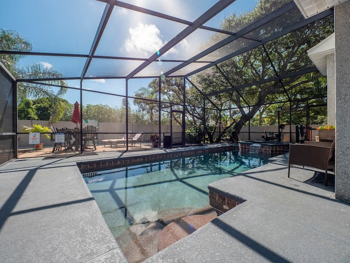 בריכה פרטית מחוממת וג'קוזי במרחק רחוב אחד מחוף הים!