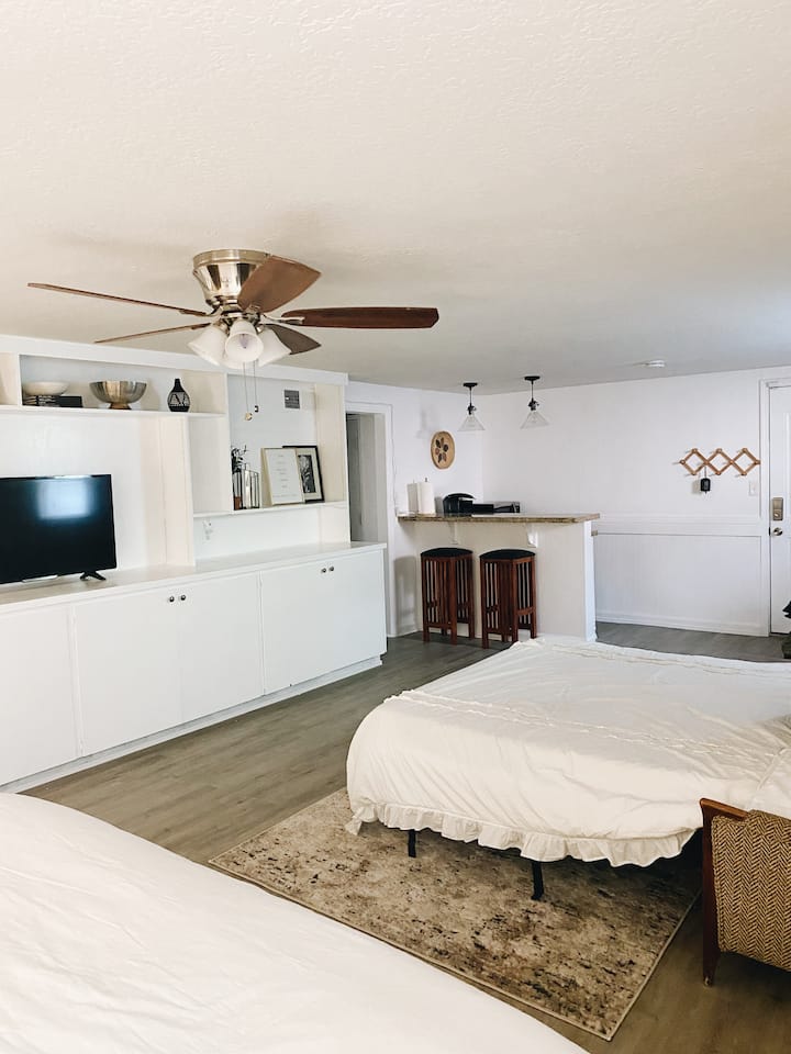 דירת סטודיו נקייה ומודרנית עם מיטת קינג-סייז וספה נפתחת