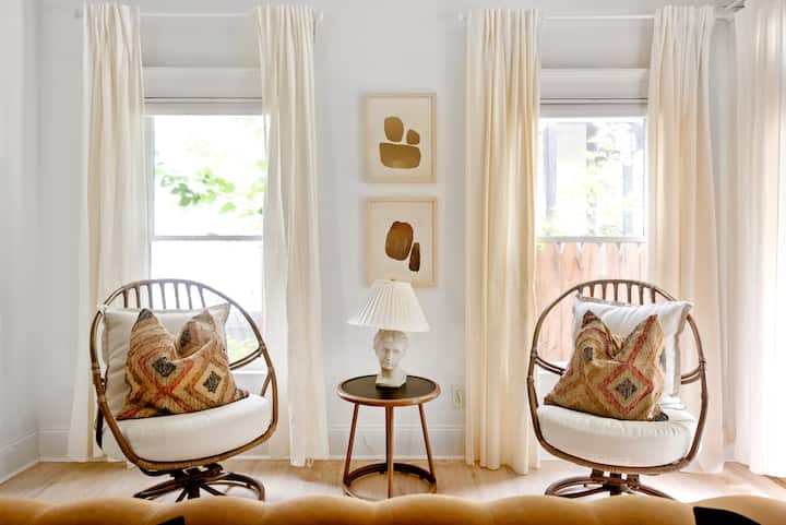 Charming single-family home 🏡 tucked away in the heart of Cabbagetown 🌆. Freshly renovated ✨ with brand-new furnishings and appliances 🛋️, this 2-bedroom retreat also features an executive office with a sleeper sofa 🛌. The master suite offers a luxurious king bed 👑, and each bedroom includes its own en-suite bathroom 🚿. Relax on two spacious porches ☕ or take a quick bike ride 🚴♂️ to nearby BeltLine entrances.