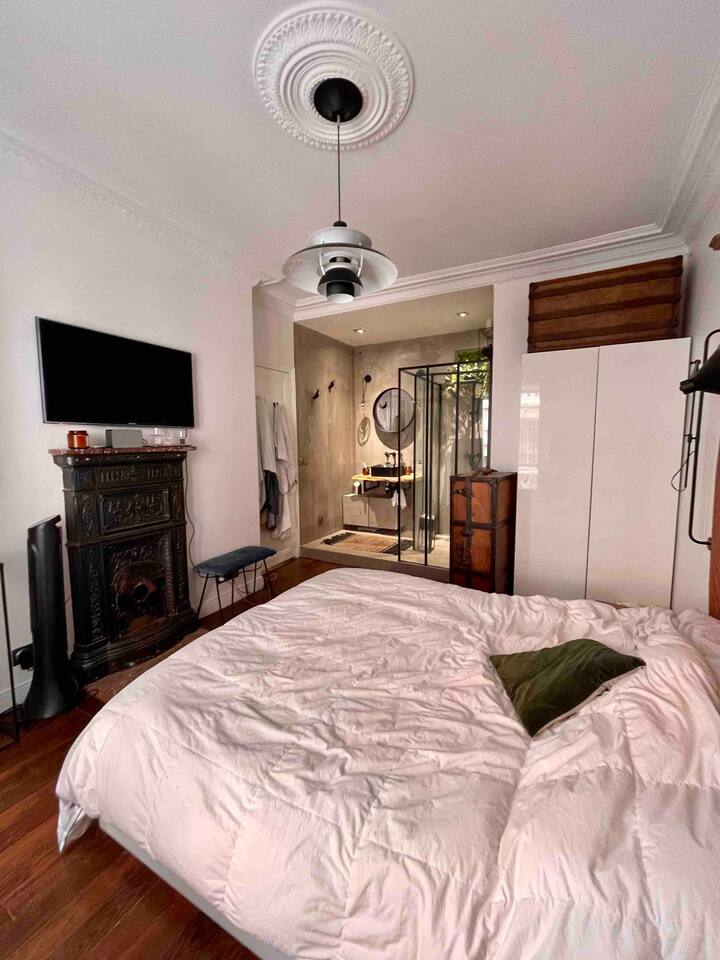 דירה פריזאית יפה,רצפת עץ, קמינים.