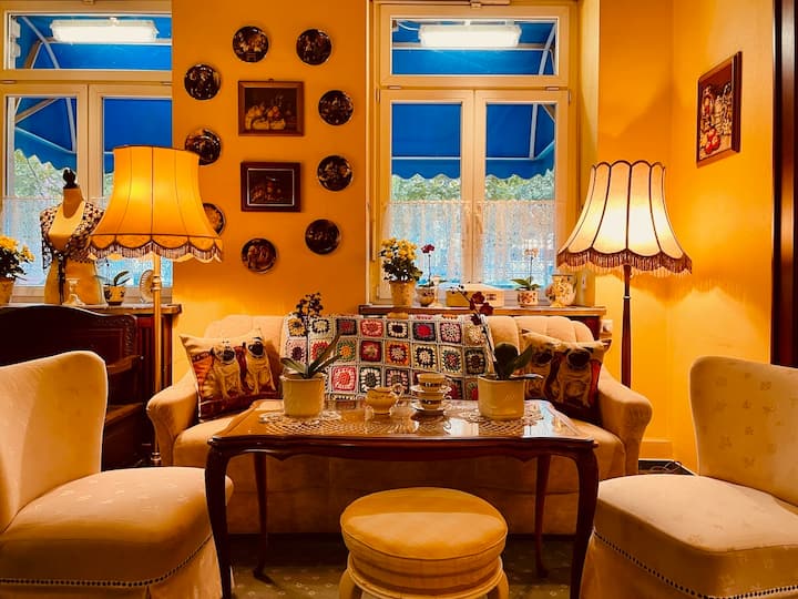לחיות עם דודה אלמה לשעבר אוגוסטה - כל הפאר מהתקופה של אלמה באופרה. היום, כמובן, אלמה כבר לא פעילה על הבמה, אבל היא שמחה על כל ביקור. אלמה אומרת שהיא רק צריכה בית מלא והרבה חיים במקום. יש גם מה לגלות בכל מקום. בין אם זה קצר או ארוך - ביקור אצל דודה אלמה הוא פשוט חלק ממנו. לביקור שלכם בדודה עלמה יש טעם של טיפות פטל ופאי תפוחים ובדרך כלל מסתיים עם ליקר מהבר של הבית.